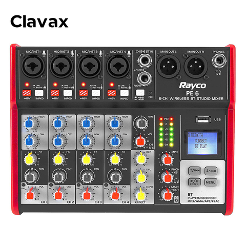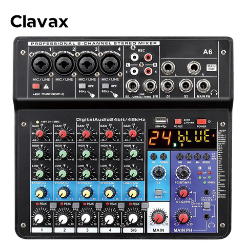 Clavax A6 USB Bluetooth Kết Nối Giao Diện Điều Khiển Mixer Chuyên Nghiệp 6 Kênh Kỹ Thuật Số Âm Thanh Âm Nhạc Mixer Giao Diện Điều Khiển Cho Bar Đảng
